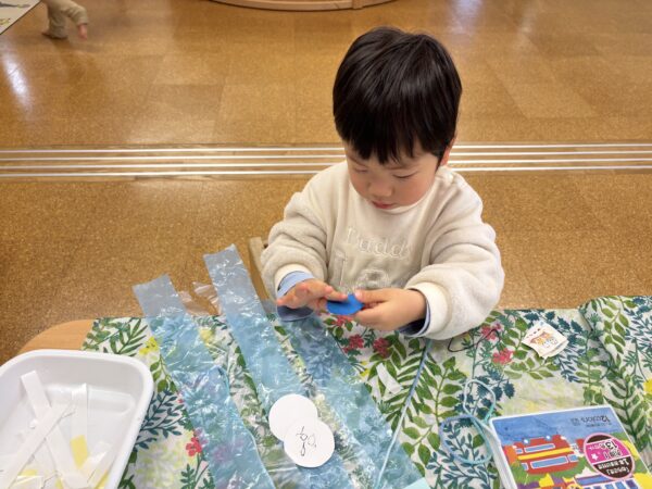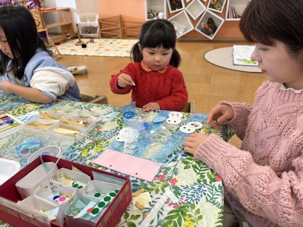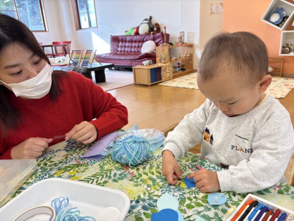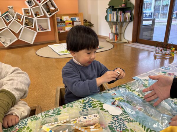 今日は『親子制作』で雪だるまガーランドを作りました。