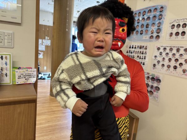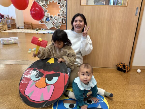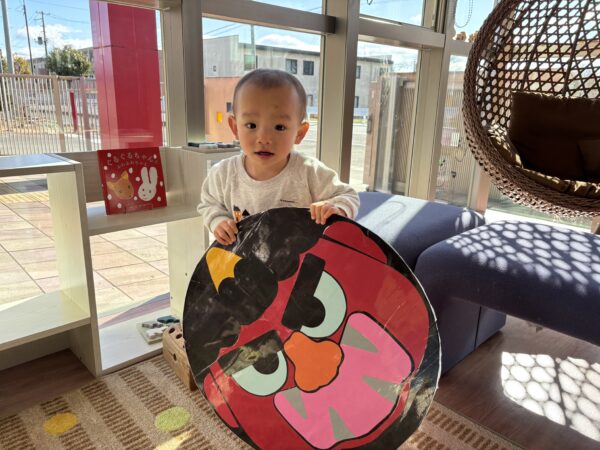 2月3日、こども園のお友だちと豆まき会をし、節分行事を楽しみました。