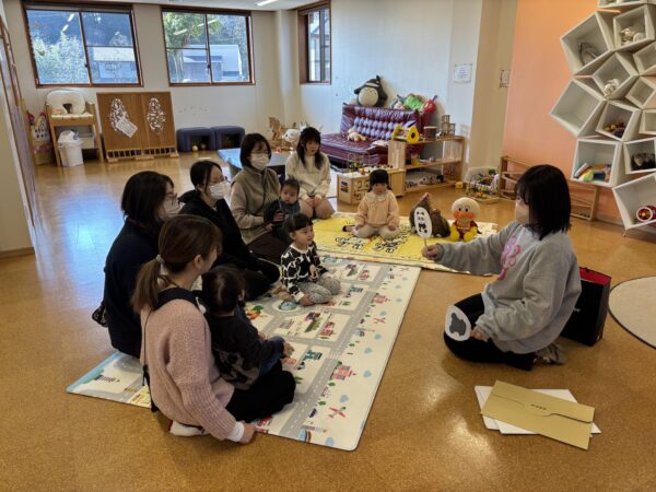 先生と一緒に手遊びのあと、紙芝居を楽しみました。