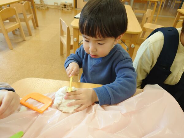 幼児部さんのお部屋で、ブロック遊びや粘土遊びを楽しみました。