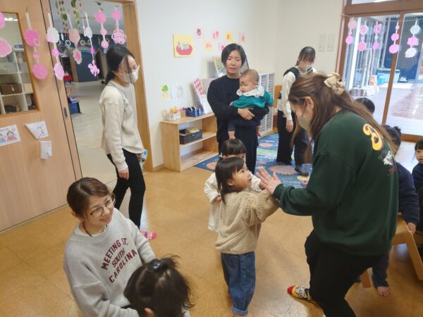 今日の『プレスクール』は、乳児部の先生の話しを聞いて