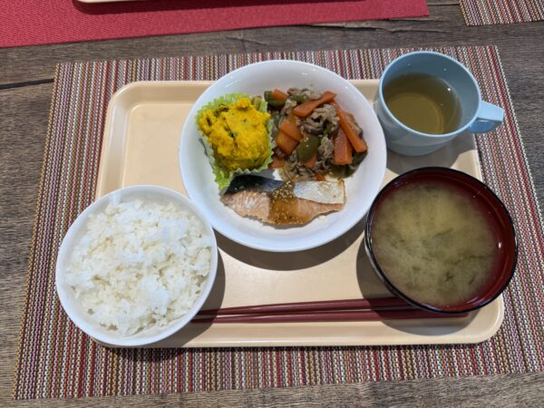 今日の昼食会は魚やかぼちゃなど