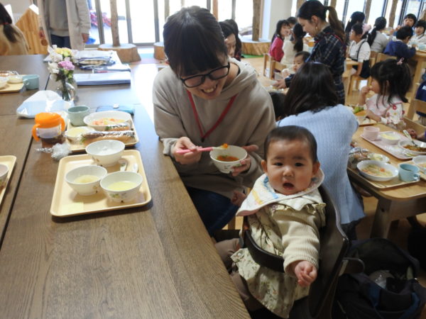 今日のメニューは、ハンバーグパン・シチュー・リンゴ。