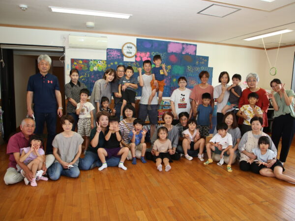 おじいちゃん・おばあちゃんの顔を見ると照れながらも笑顔がこぼれる子ども達。ふれあい遊びでは、『なべなべそこぬけ』でたくさん手を繋いでもらい、「ここから入って!」「手は離さないで!」と子ども達は一生懸命声を掛け、最後に大きな輪になった時にはみんな拍手で大盛り上がりでした。祖父母の方の膝に座る『膝取りゲーム』では、お孫さんに限らずたくさんの子ども達を優しく抱きしめてもらいました。
