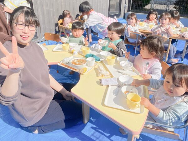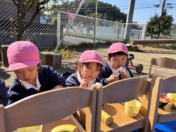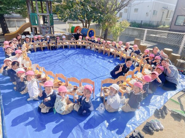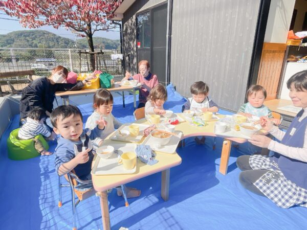 秋晴れの下、子どもの館みんなで外で食べました!!