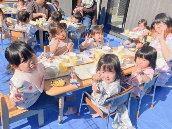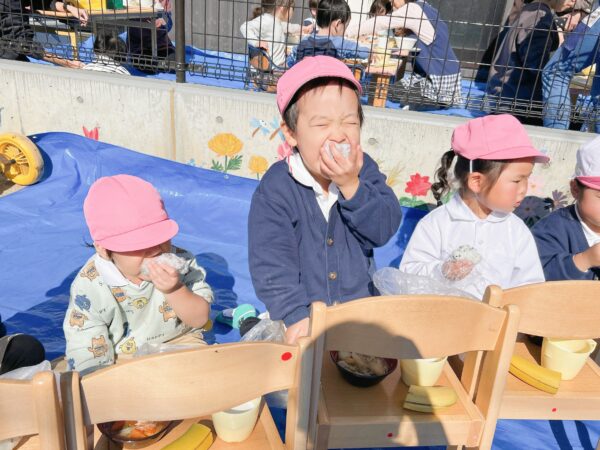 「みんなで作ったからおいしいね~」「外で食べるって気持ちがいいね!」とたくさんの笑顔があふれた芋煮会でした!