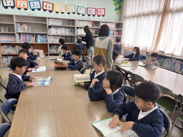 図書室では、好きな本を選んで読んでいいと言われると喜んで自分の興味のある本を見つけてしっかり座って読んでいました。