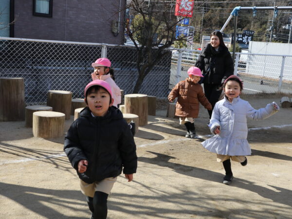 久しぶりに登園した子どもたちはお友達と会えたことが嬉しそう。早速誘い合って一緒に遊ぶ姿が見られました。