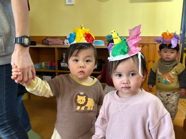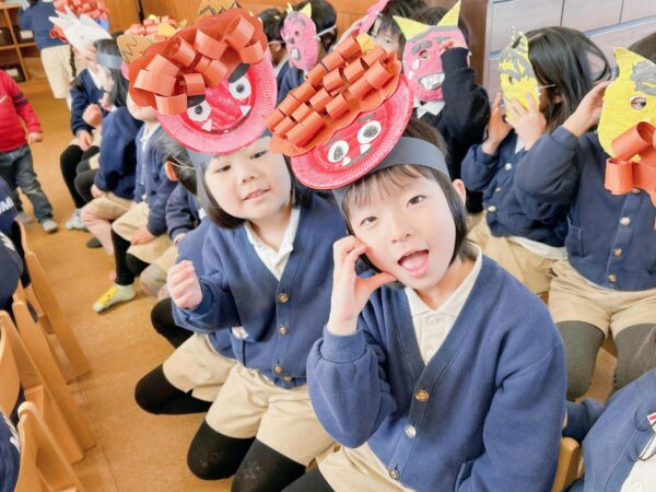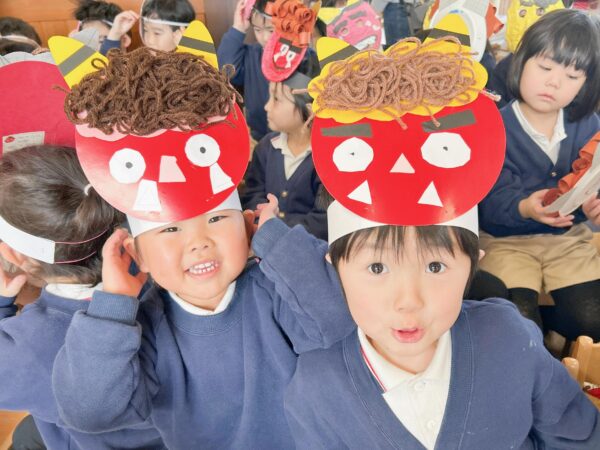 今日は節分ですね。子ども達はこの日に向けて鬼のお面を制作しました。